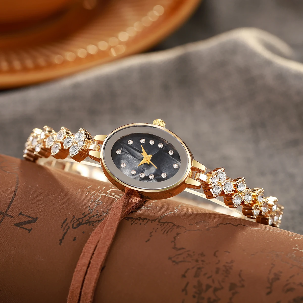 Fashion Simple Full of Crystals Oval Diamond Dial Quartz Steel Strap Watch