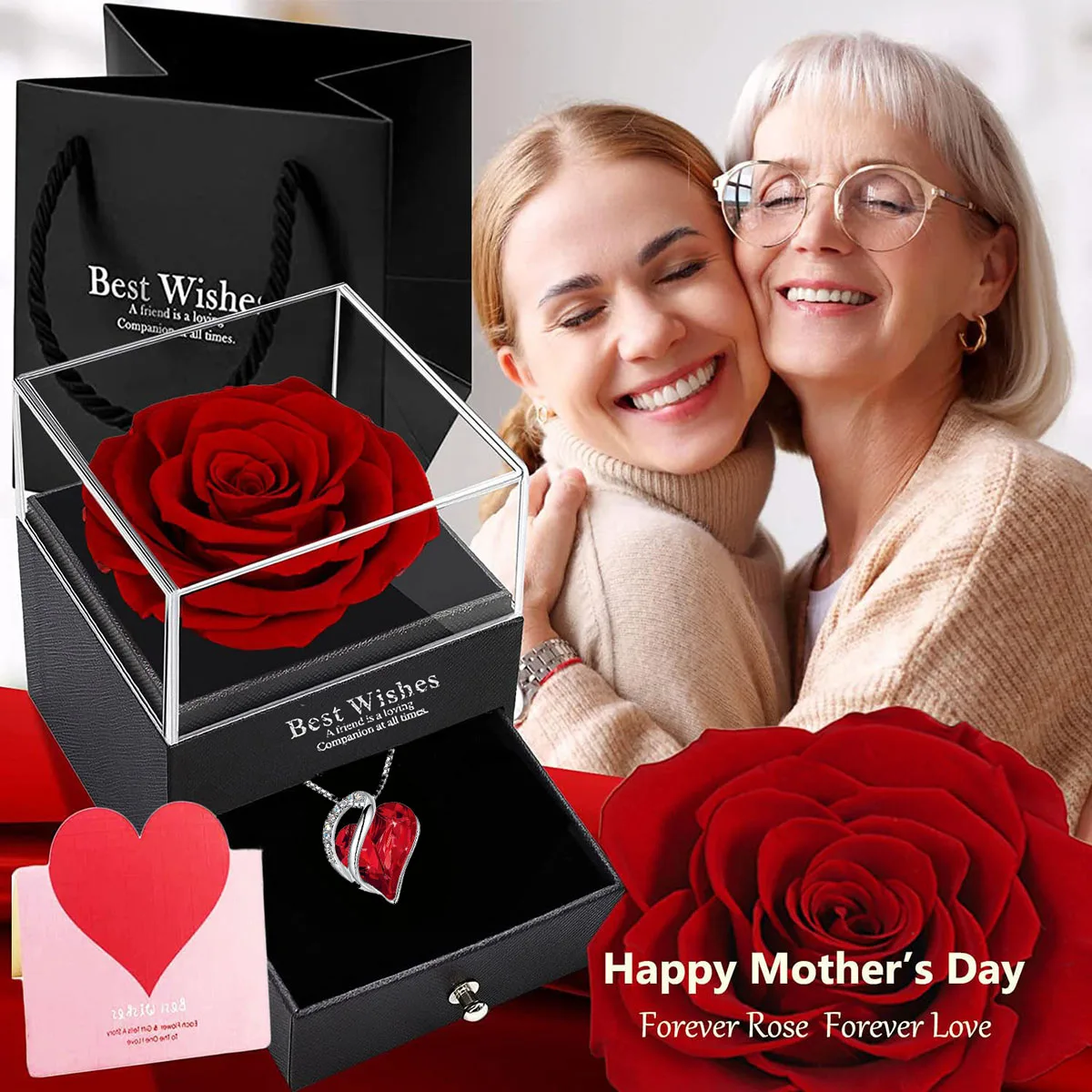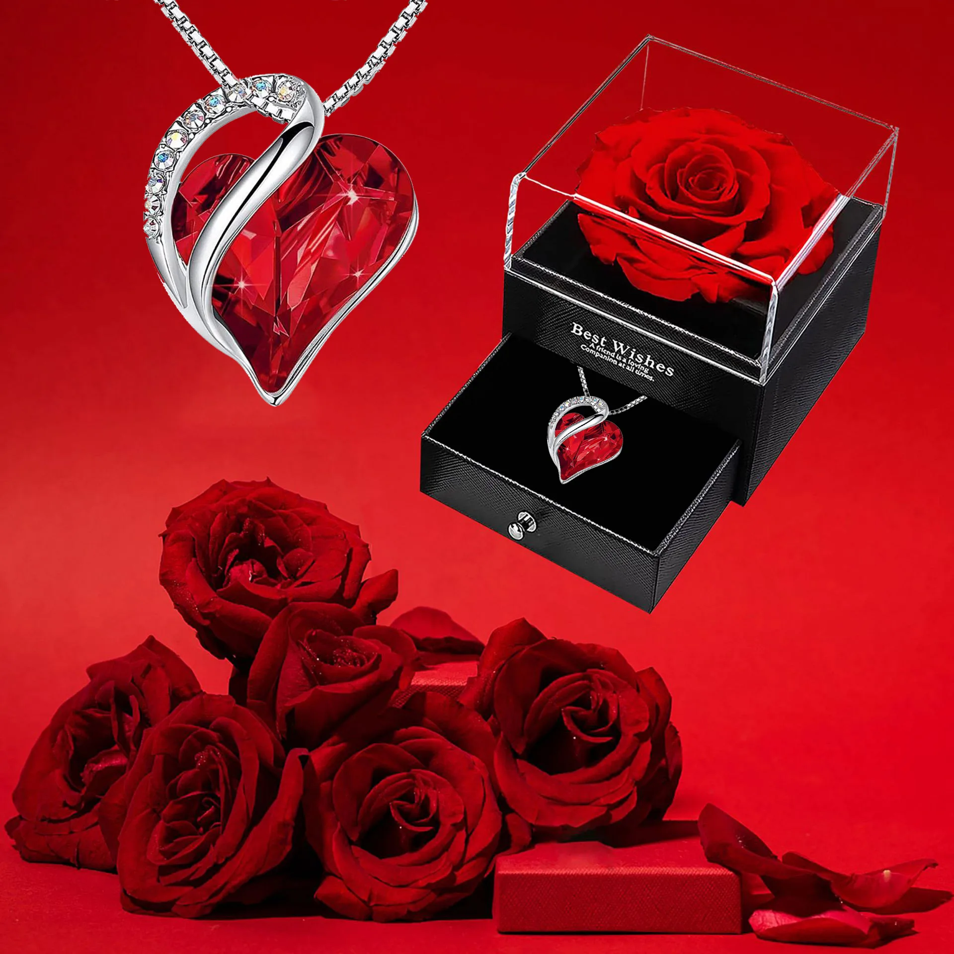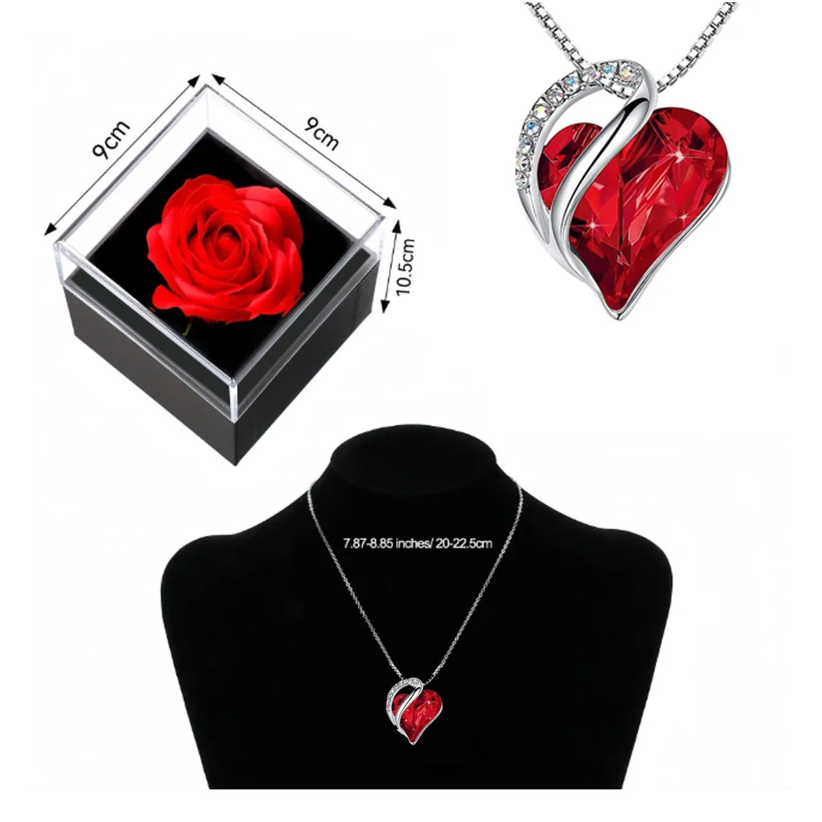 New Hot Selling Valentine’s Day Gift Ocean Heart Love Necklace with Eternal Rose Jewelry Box For Girl Mother’s Day Gifts